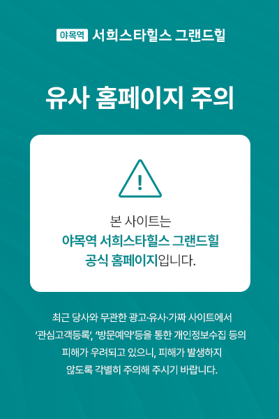 새로운 화성 비봉 프리미엄을 여는 견본주택 경기도 안산시 단원구 광덕4로 178 현장 경기도 화성시 효행구 비봉면 구포리 614-18번지 일원 COPYRIGHT © 2026. 야목역 서희스타힐스 그랜드힐. ALL RIGHTS RESERVED. ※ 본 홈페이지에 사용된 CG, 사진, 일러스트 등은 소비자의 이해를 돕기 위한 것으로 실제와 차이가 있을 수 있습니다. ※ 본 홈페이지에 표기된 사항은 인허가 및 건축허가 변경 승인에 따라 변경될 수 있으며, 제작과정에서 오탈자 혹은 수치표기 오류가 있을 수 있으므로 자세한 사항은 상기 번호로 문의하시기 바랍니다.