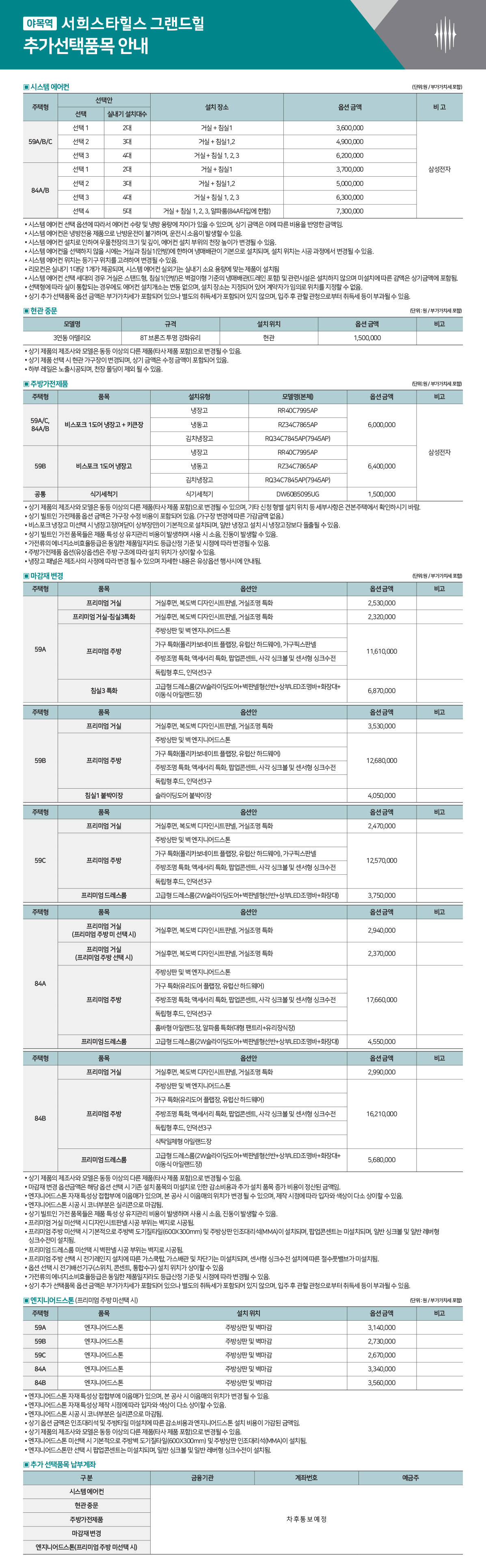 추가선택품목안내